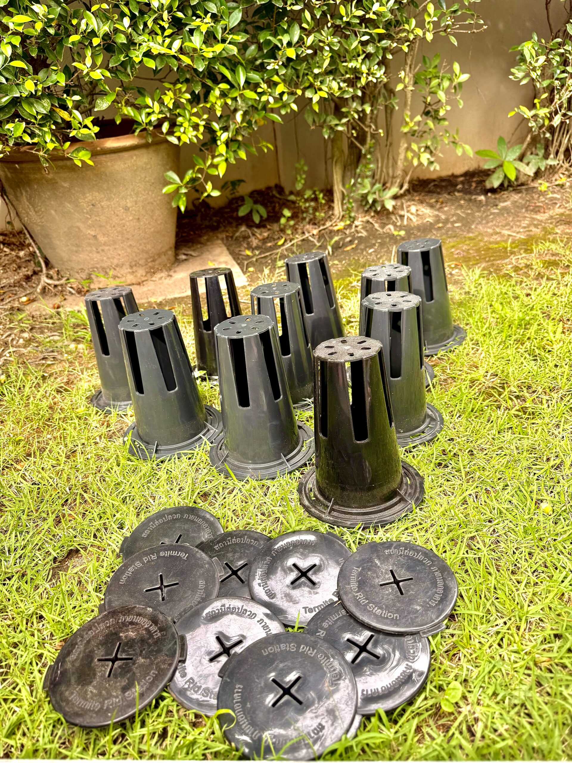 การติดตั้งสถานีเหยื่อ: บริษัทผู้ให้บริการจะทำการสำรวจและติดตั้งสถานีเหยื่อไว้ตามจุดต่างๆ ที่พบทางเดินปลวก